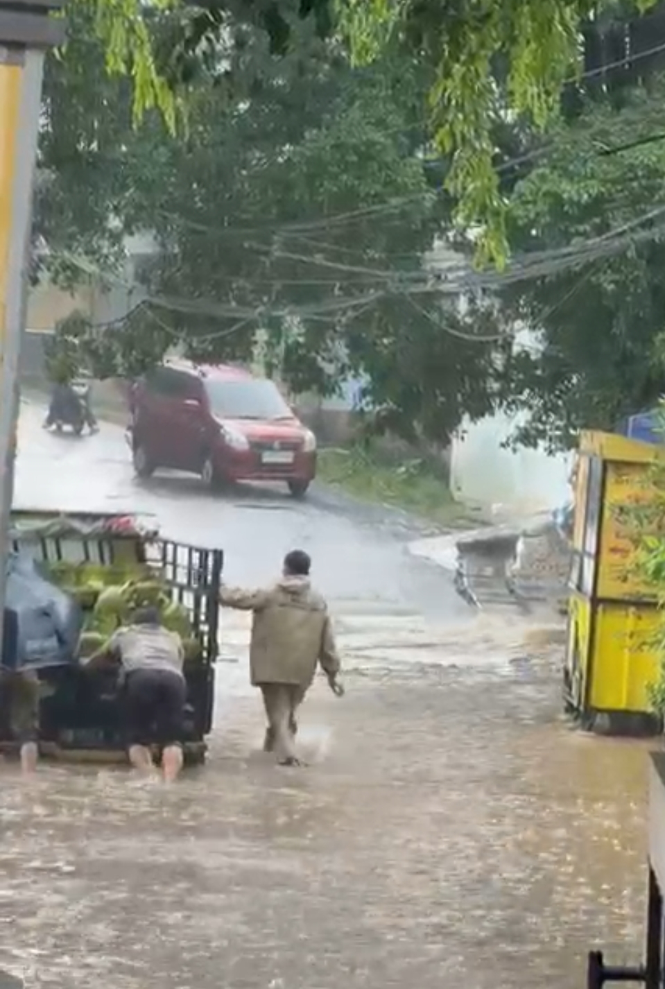 Peristiwa terjadi di depan Perumahan Spring Garden, Jl. Rambutan RT 09/03, Kelurahan Jatimurni, Kecamatan Pondok Melati, Kota Bekasi. Untuk menghindari kemacetan dan potensi bahaya, Bripka Galih langsung membantu mendorong kendaraan ke jalur yang lebih aman dan tidak tergenang.