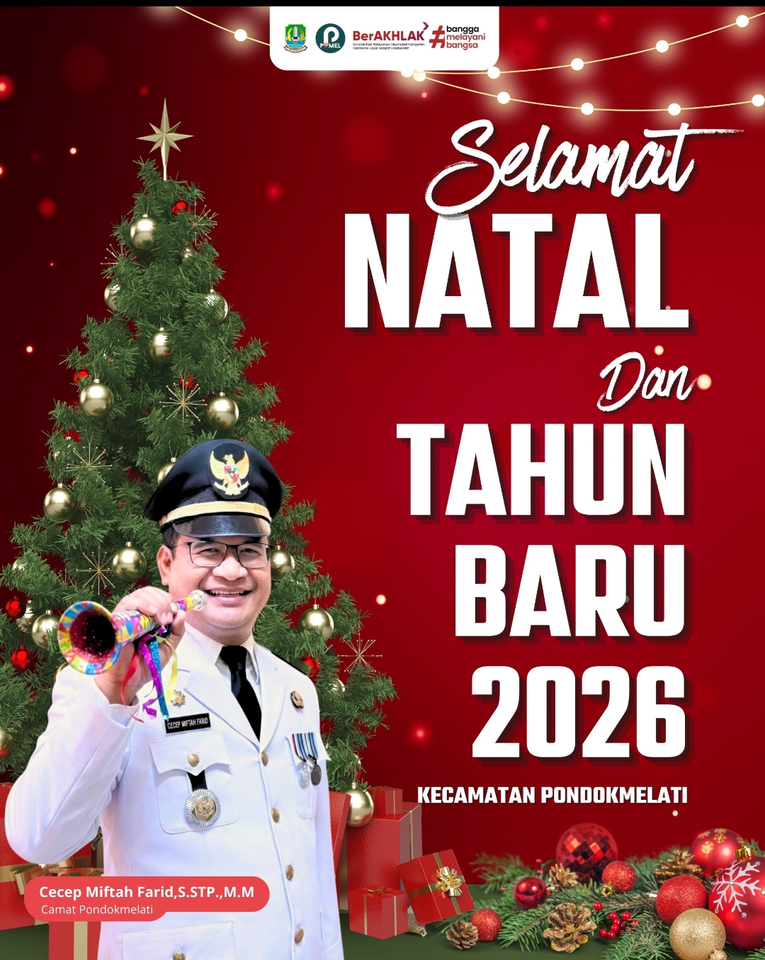Artikel Camat Pondok Melati Mengucapakan Selamat Hari Natal dan Tahun Baru 2026 Adetya Desember 26, 2025 Related Posts:TNI - Polri dan Pemkot Jatisampurna Kawal Ibadah…Kapolsek Pondok Gede: Perayaan Natal Jadi Momentum…Wali Kota Bekasi Bersama Unsur 4 Pilar Pantau…Rakor Tiga Pilar Kebayoran Baru Matangkan Pengamanan…Apel Siaga Nataru 2025–2026 Digelar, Camat…Sebanyak 81 WBP Rutan Kelas I Jakpus Dapat Remisi… Post Views: 81 Post Navigation Previous Lurah Jatimurni mengucapakan Selamat Hari Natal dan Tahun Baru 2026Next Libur Nataru 2025–2026, Polres Metro Tangerang Kota Dirikan 10 Posko Pengamanan Perlintasan Dump Truck Berita Lainnya Artikel Seputar Kita Keluarga Besar Dimar elektronik Mengucapkan Minal aidzin wal faizin Adetya Maret 20, 2026 Artikel Seputar Kita “Embun Pengabdian di Cilodong” Kala Peluh Prajurit Menjelma Mata Air Harapan Adetya Maret 12, 2026 Artikel DLH Kecamatan Pondok Melati Mengucapkan Dirgahayu Ke 29 Kota Bekasi Adetya Maret 9, 2026